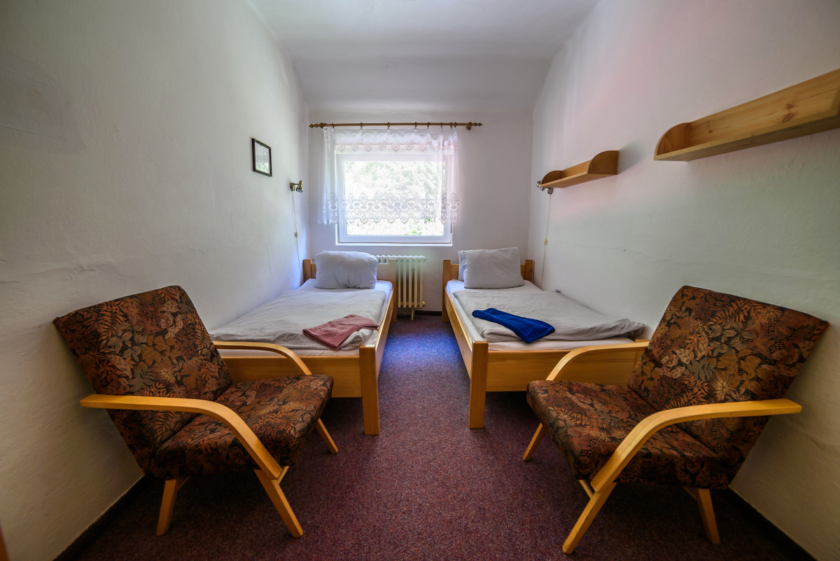 Chata nabízí 4 pokoje se čtyřmi lůžky.