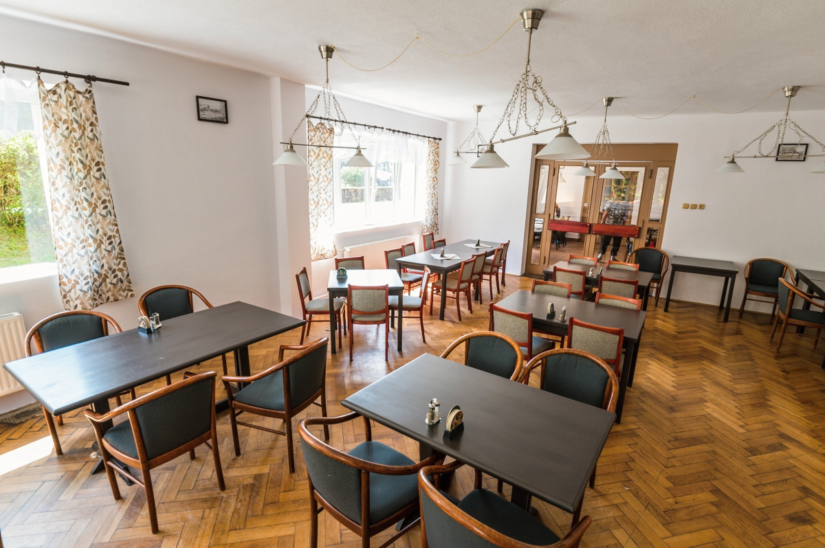 V chatě nechybí šumavská tradiční restaurace či posezení na venkovní terase s výhledem. Na pozemku je hřiště, ping-pongový stůl a posezení u řeky.