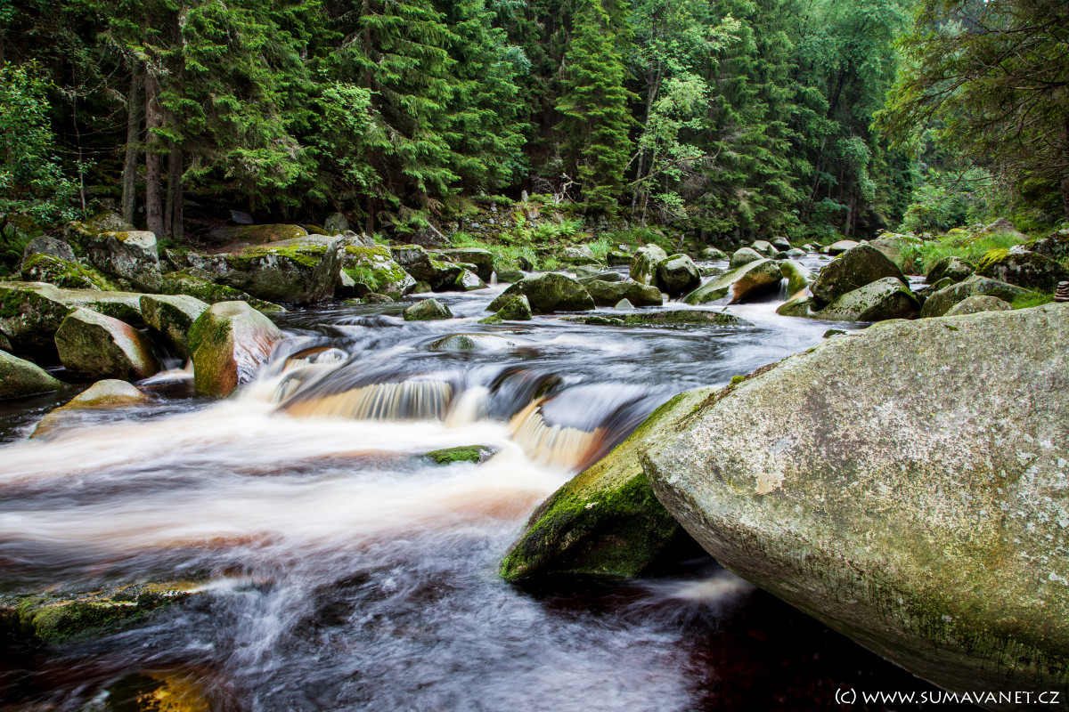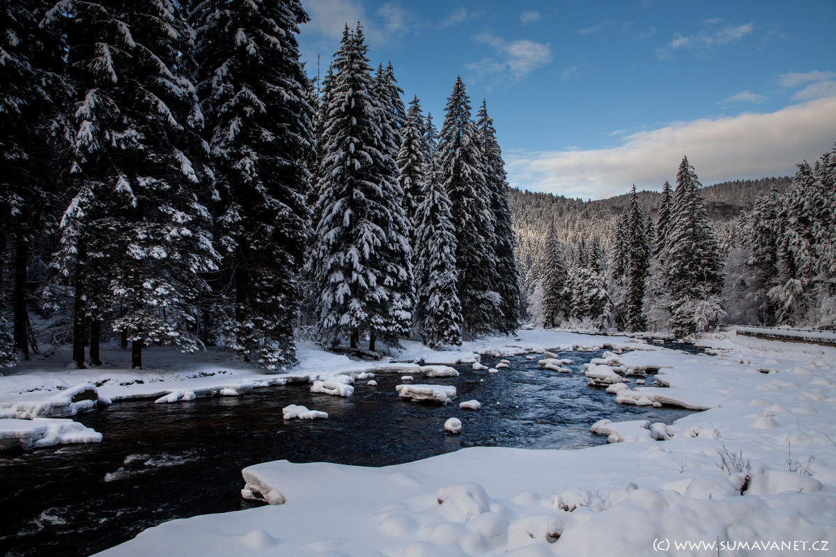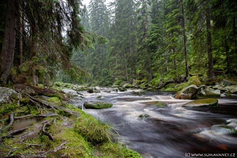 V blízkosti naší chaty soutokem šumavských řek Vydra a Křemelná vzniká zlatonosná řeka Otava.